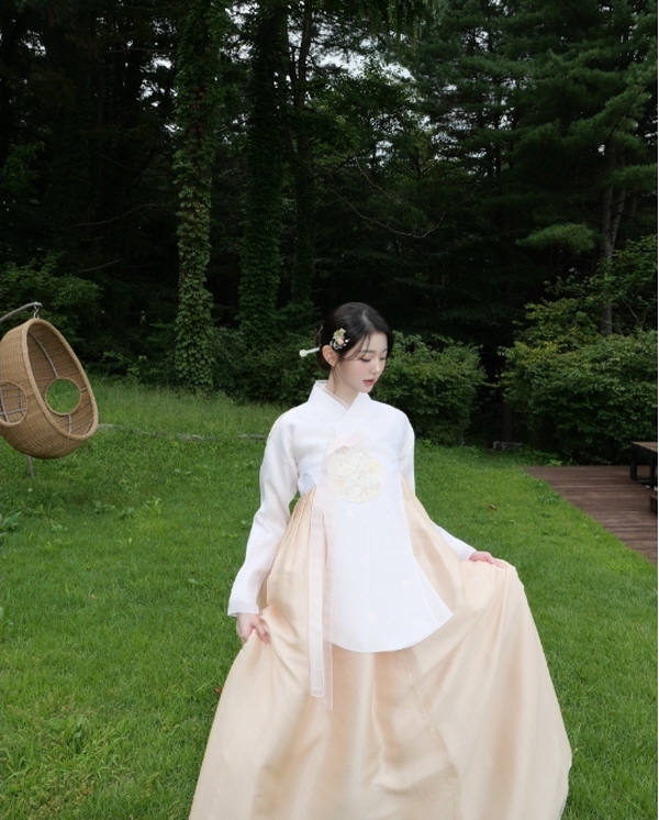 公開された写真の中で、チャン・ウォニョンはアイボリーの韓服を美しく着こなしてポーズをとっている。細かい刺繍の模様が刻まれたチョゴリと、ほのかなベージュ色のチマ(スカート)が調和し、古典的な美しさを倍加させた。髪に挿した花飾りと自然で端正なヘアスタイルは、洗練された現代的な感覚を加え、伝統美とトレンディさを完璧に調和させた。