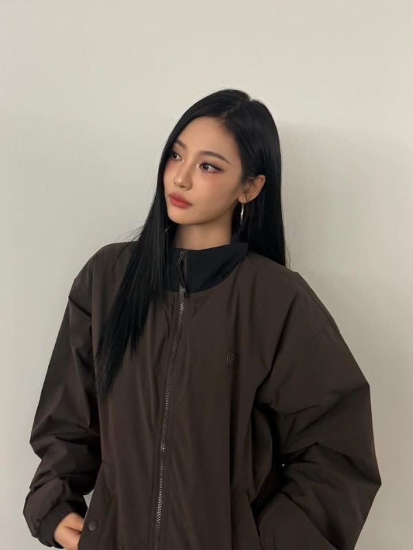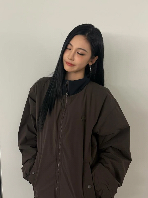自然にポーズをとった姿では、ゆったりとした雰囲気とともに、ニンニンならではの都会的なビジュアルが際立った。マットなテクスチャーのジャケットとシンプルなイヤリング、長いストレートヘアまで加わり、ミニマルながらも感覚的なスタイリングを完成させた。