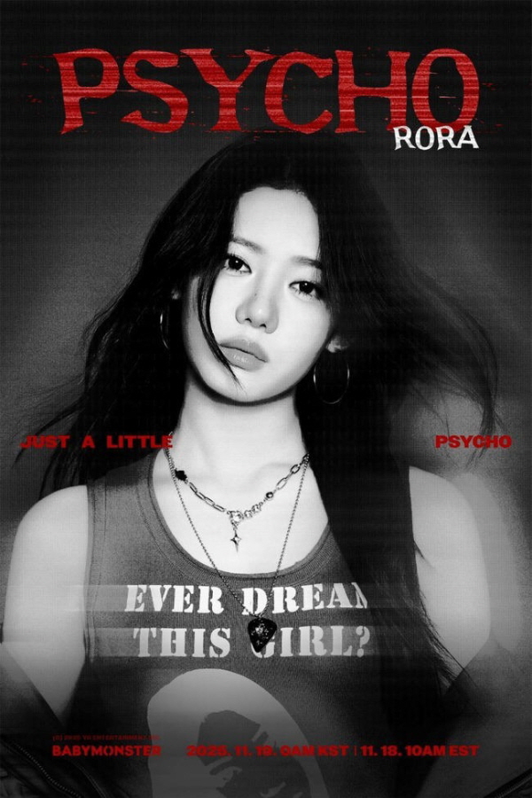 YGエンターテインメントは11月10日、公式ブログにBABYMONSTERのミニ2集「WE GO UP」収録曲「PSYCHO」のコンセプトを垣間見ることができる個人ビジュアルを公開した。強烈なレッドタイポとモノクロカラーのコントラストが絶妙な緊張感を醸し出すポスターには、ルカとローラの卓越したビジュアルが盛り込まれた。