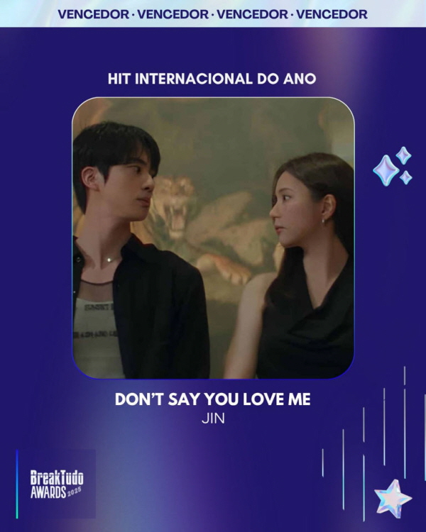 ソロアーティストとしても活動中の防弾少年団(BTS)ジンの「Don't Say You Love Me」が11月18日(現地時間)、ブラジル・サンパウロで開催された「BreakTudo Awards 2025」で、「International Hit of the Year」のトロフィーを手にした。今年グローバルポップ市場を揺るがしたヒット曲が一斉に候補に上がった激しい競争の中、ジンの音楽は現地ファンの選択を受けて国際的な存在感を再び証明した。