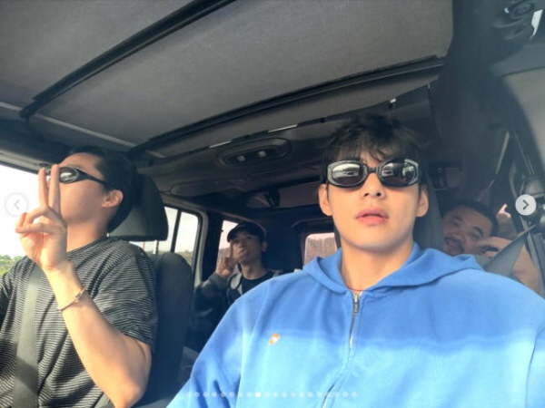 公開された写真には、Vの芸能界の友人の集まりである「ウガファミリー」メンバーの姿が写っている。俳優パク・ソジュンから俳優チェ・ウシク、俳優で歌手のパク・ヒョンシク、歌手Peakboyまで、完全体の姿が収められている。