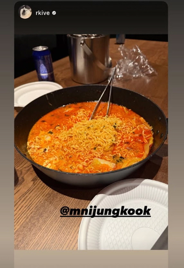 グループ防弾少年団のメンバーRMは10日午前、自身の個人アカウントに大きな鍋に作られたラーメンの写真を公開し、ジョングクのIDをタグ付けした。ジョングクもこの写真を自身の個人アカウントに載せた。