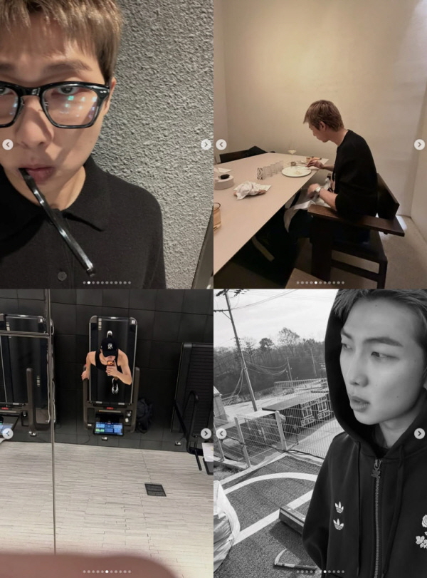 写真の中のRMは、洗面台の前で歯ブラシを噛み、カメラに向かってぼんやりとした表情をしている。さらに短くなったヘアスタイルと、黒いフチのメガネが目を引く。また、彼はある食堂でご飯を食べたり、ジムで運動している写真も相次いでアップロードしながら、ファンと積極的にコミュニケーションした。
