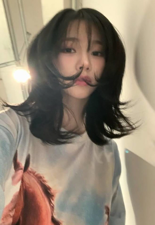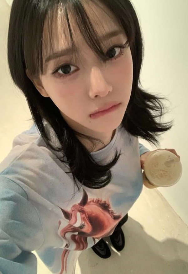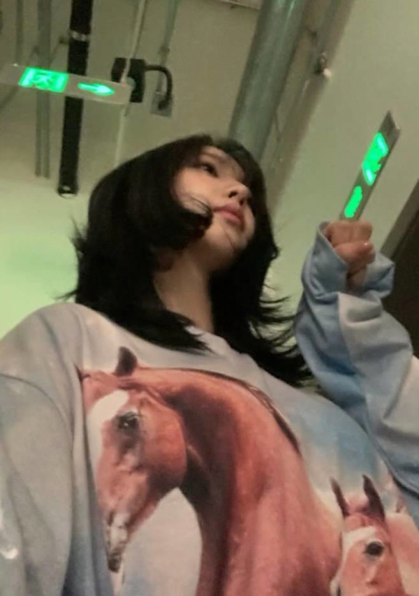 aespaカリナは日常的な自撮りさえ、熱いファッションシーンに変えた。今回のインスタグラム写真で視線を捉えたのは、断然「OPEN YY(オープンワイワイ)」の赤馬ロングスリーブマルチTシャツだ。