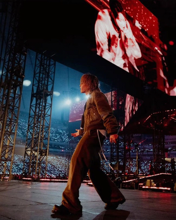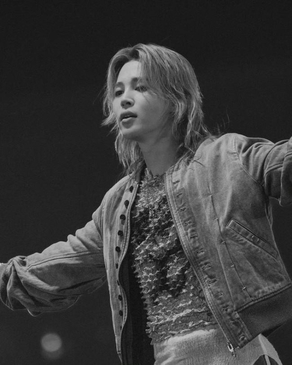 公開された写真には、コヤン総合運動場主競技場と東京で開催されたワールドツアー「BTS WORLD TOUR ARIRANG」公演当時、ステージ上でパフォーマンスしているジミンの姿が盛り込まれた。
