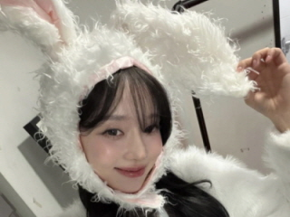 aespaウィンター、白いウサギを連想させる清純美…ウサギの被り物をかぶってウィンク