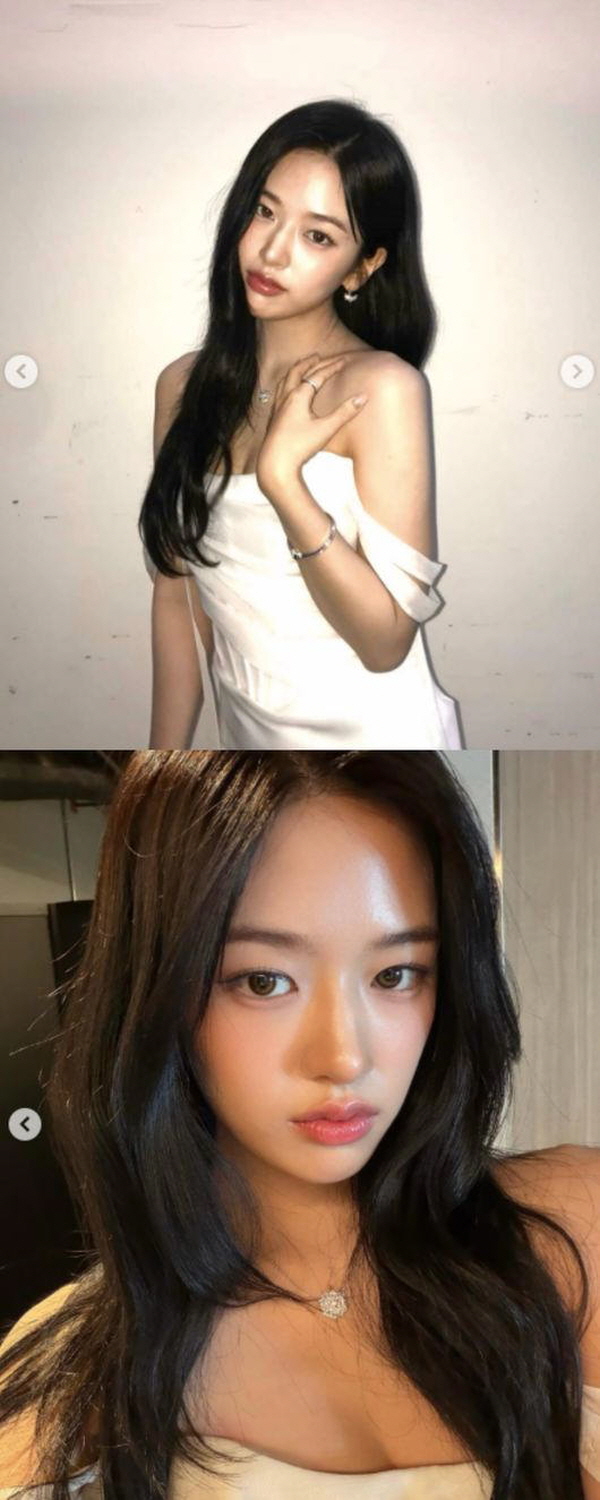 公開された写真の中、アン・ユジンは肩のラインが露出されるホワイトオフショルダードレスを着て、カメラに向かって微笑んでいる。長い黒髪を自然におろしたまま、すっきりとしたメイクをしたアン・ユジンは、清純でエレガントな雰囲気を同時に醸し出した。