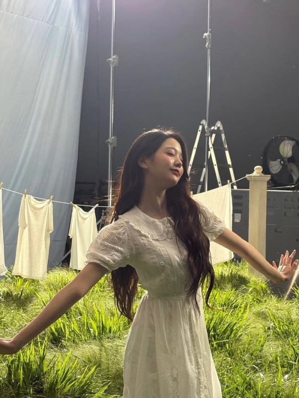 続く写真の中のチャン・ウォニョンは、さわやかな草原を背景に純白のアイレットワンピースを着て、腕を広げたまま日差しを満喫している姿だ。長いウェーブヘアをおろしたまま目をギュっとつむった姿は、まるでおとぎ話のお姫様が現実に飛び出してきたような錯覚を呼び起こす。